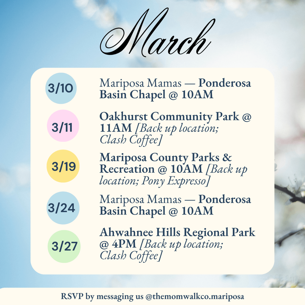 To learn more about Mom Walk Events near you, check out their Instagram accounts. @themomwalkco.mariposa @themomwalkco.madera @themomwalkco.oakhurst